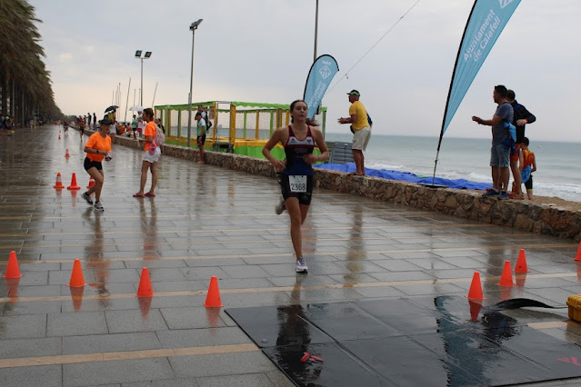 La prueba del sábado 17 celebrada por la tarde, acogió a un total de 78 participantes venidos de toda Cataluña que gozaron de una prueba diseñada y organizada específicamente por ellos y ellas. Empezaron con la natación en el mar, teniendo que nadar, según categoría, 20 m los prebenjamines, 50 m los benjamines y 100 m los alevines, para después continúa con el ciclismo, y recorrer 1km, 2km y 4 km respectivamente para terminar corriendo 300 m, 500 my 1 km también según la categoría.